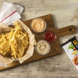 2. מכינים את הקדאיף: בקערה גדולה מערבבים שערות קדאיף, חמאה מומסת ואבקת סוכר ומשטחים בתבנית אפייה.