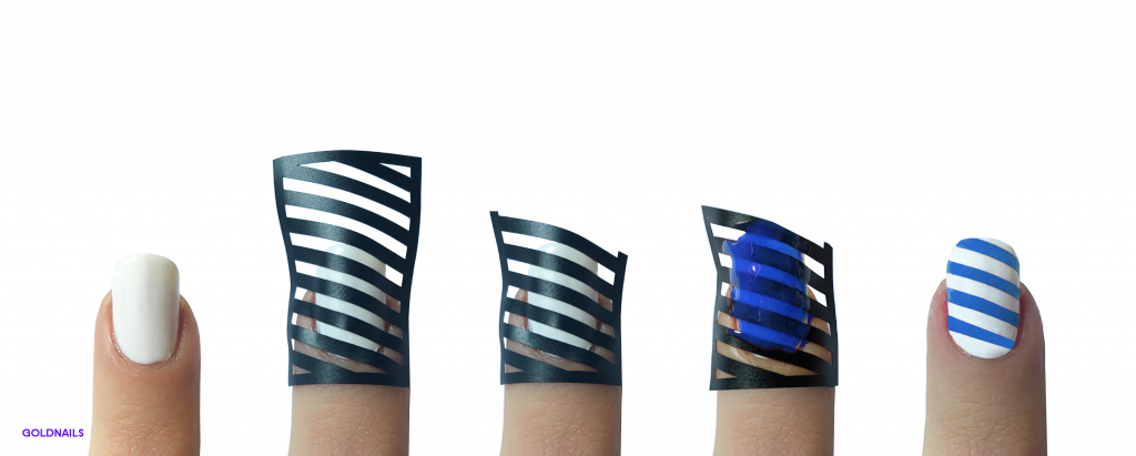 פסים אלכסוניים – הניחי מדבקת שבלונה לציפורניים של גולדניילס בעיצוב פסים אלכסוניים