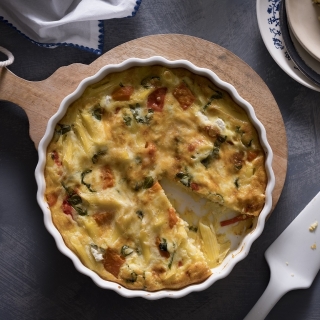 מוסיפים פטרוזיליה קצוצה, ומערבבים. מעבירים לצלחות הגשה ומפוררים מעל גבינת פטה.