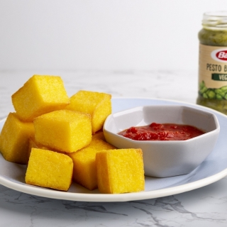 להגשה מטפטפים מעט שמן זית / שמן כמהין ומפזרים גבינת פרמזן